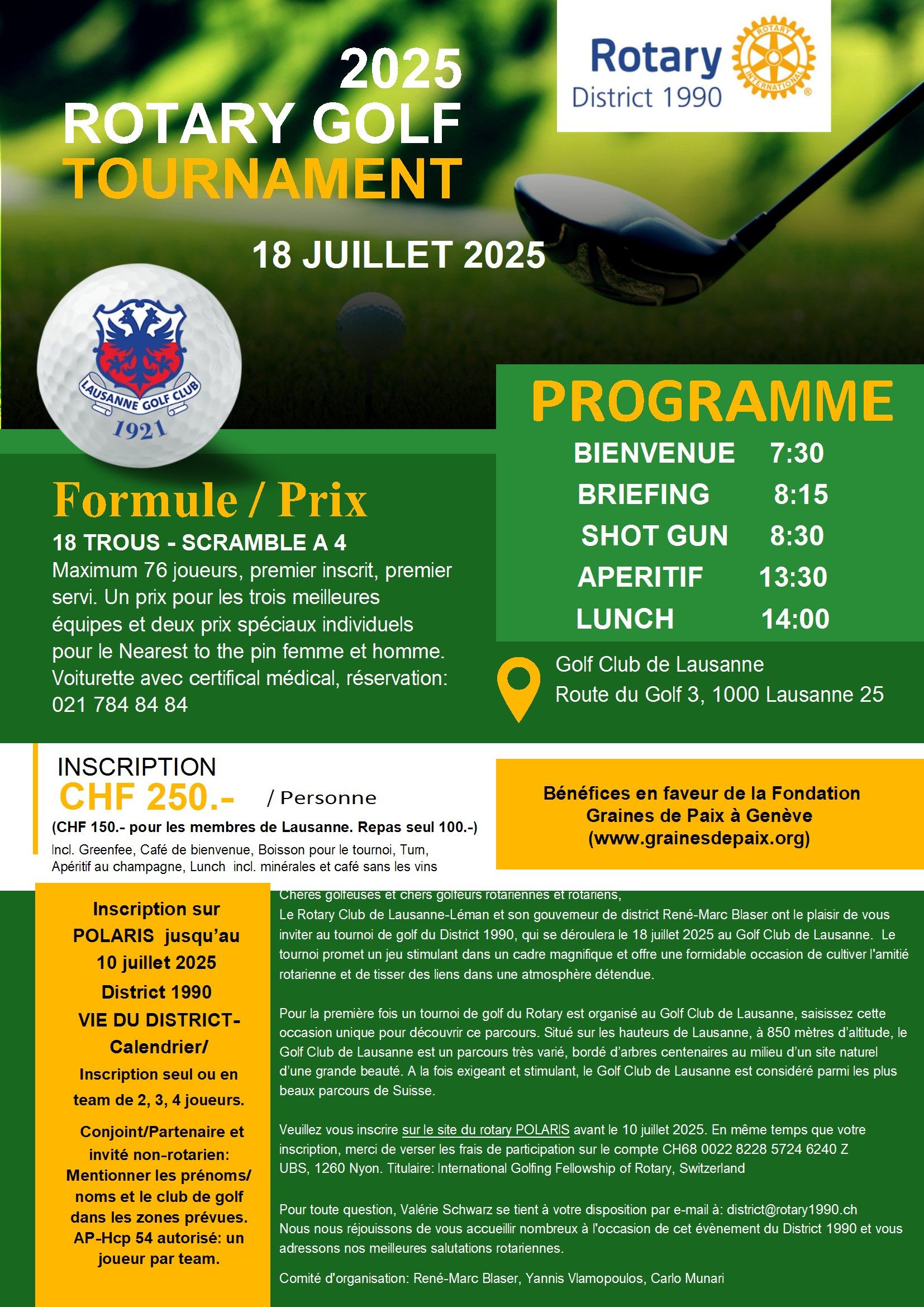 Invitation - Programme – Inscription | Tournoi de Golf du District 1990